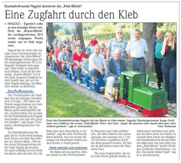 Bericht in der Nagolder Woche “Aktivierung Kleb-Bähnle”